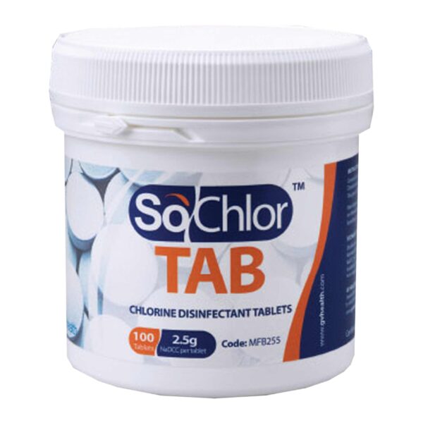 SoChlor TAB Chlorine Disinfectant Tablets (Sodium Dichloroisocyanurate / Troclosene Sodium) are used to deliver the correct and exact strength chlorine solutions for disinfection of blood spills and surfaces in high-risk areas. Because the chlorine-based solution is made up on-the-spot as required there are no transportation, storage or contamination issues normally associated with hazardous and naturally unstable hypochlorite solutions. Chlorine tablets are stable, compact and easy to store for longer periods until required.